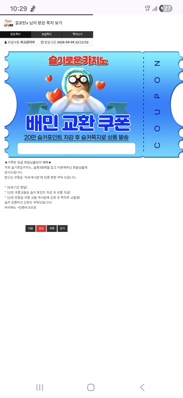 가족방 쿱 길로틴v 2 0 0 04.04 22:31 http://감사합니다 + 1 *기프티콘 바코드 노출 주의* <- 0 0 https://seulca1.com/bbs/board.php?bo_table=free&wr_id=3755386 Author 8 1 Lv.12 길로틴v 12 15,107,870 (42%) 길로틴v님 보유 포인트 : P 189,925 +1 04.07 긴급입니다 +1 04.07 출석커피 ㅅㅅ 04.07 굿모닝입니다 ^^ +36 04.06 나이스 3타이 ㅅㅅ +39 04.06 7퍼펙페어 맛잇^^