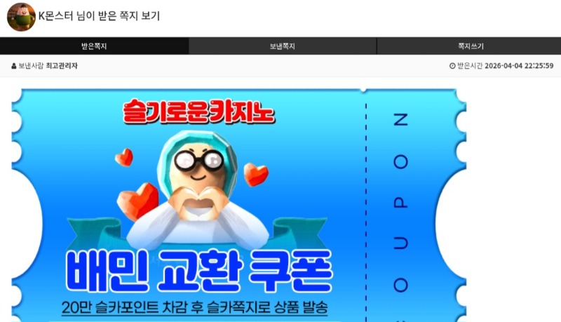 가족방배민 교환권 K몬스터 2 0 0 04.04 23:05 *기프티콘 바코드 노출 주의* <- 이번달도 어김없이 슈웃~~ 0 0 https://seulca1.com/bbs/board.php?bo_table=free&wr_id=3755478 Author 12 3 Lv.15 K몬스터 15 41,685,851 (58%) K몬스터님 보유 포인트 : P 3,385 +12 04.05 사자럭포슈웃~ +14 04.05 일보기7등당첨 +2 04.04 가족방배민 교환권 +11 04.04 모닝3연당 +16 04.04 일보기5등당첨