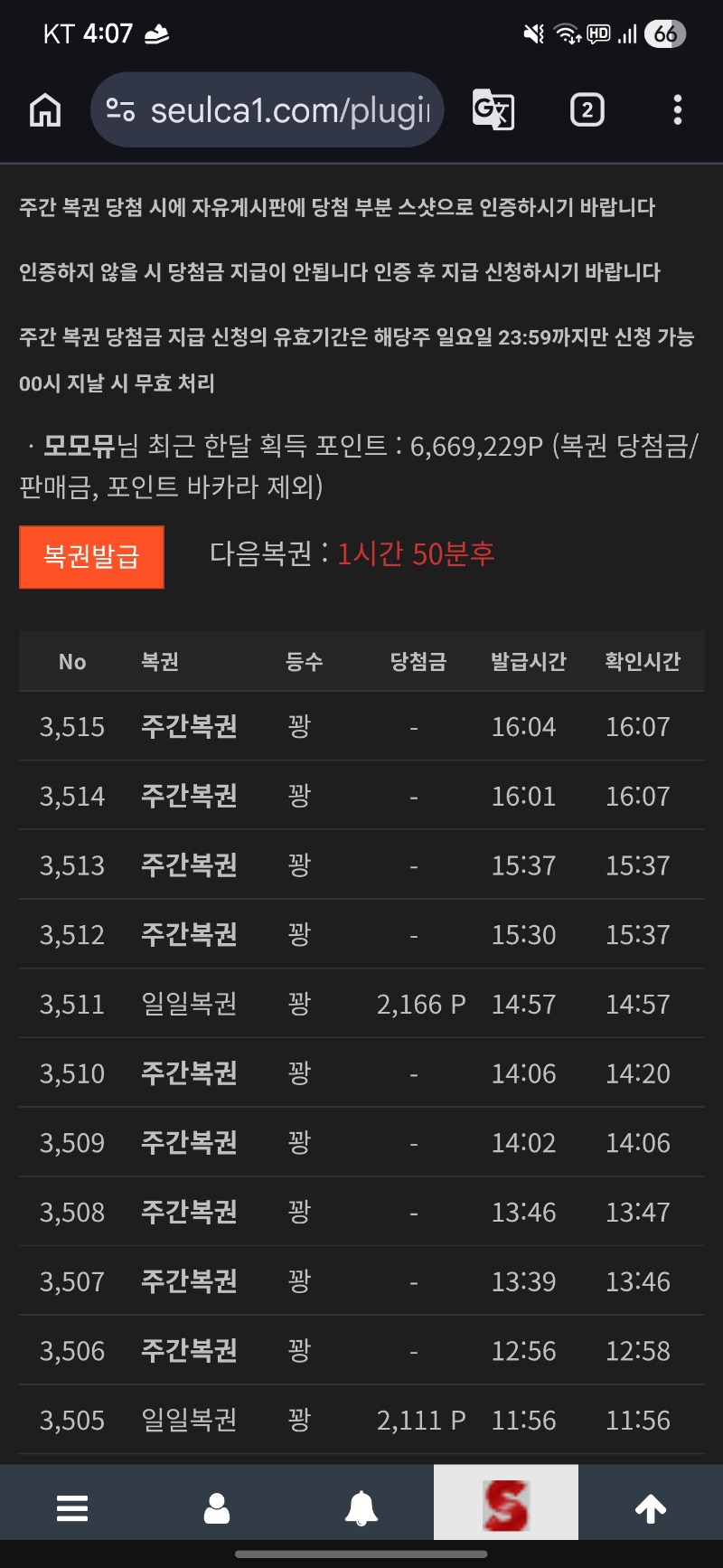 나도 주복 당첨 가보자앗... 모모뮤 1 0 0 16:07:51 *기프티콘 바코드 노출 주의* <- 구경이라도 아무등수나... 0 0 https://seulca1.com/bbs/board.php?bo_table=free&wr_id=3757901 Author 2 0 Lv.11 모모뮤 11 12,651,948 (88%) 모모뮤님 보유 포인트 : P 3,347,352 +5 04.05 복권 일복 다사드렸숨돠~ +1 04.05 나도 주복 당첨 가보자앗... +4 04.05 슬카라 다시 기적 가즈아~~ +1 04.05 진짜 드럽게안주네 +1 04.04 [비밀글] 배민교황