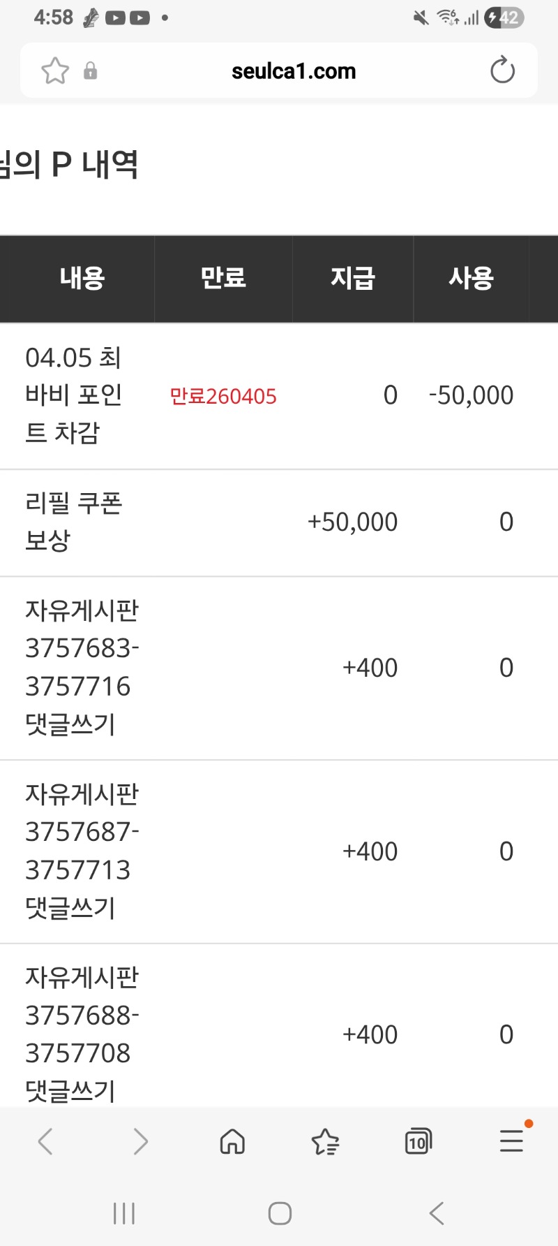 최바비 참가비 차감완료.