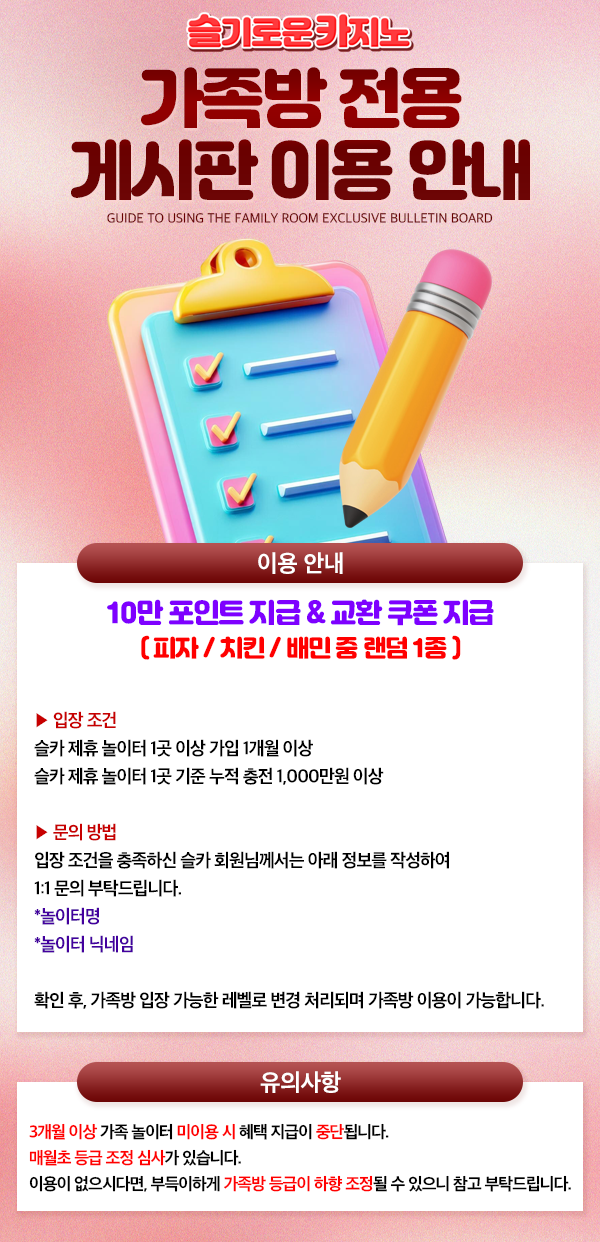 [안내] 가족방 전용 게시판 안내 및 유의사항