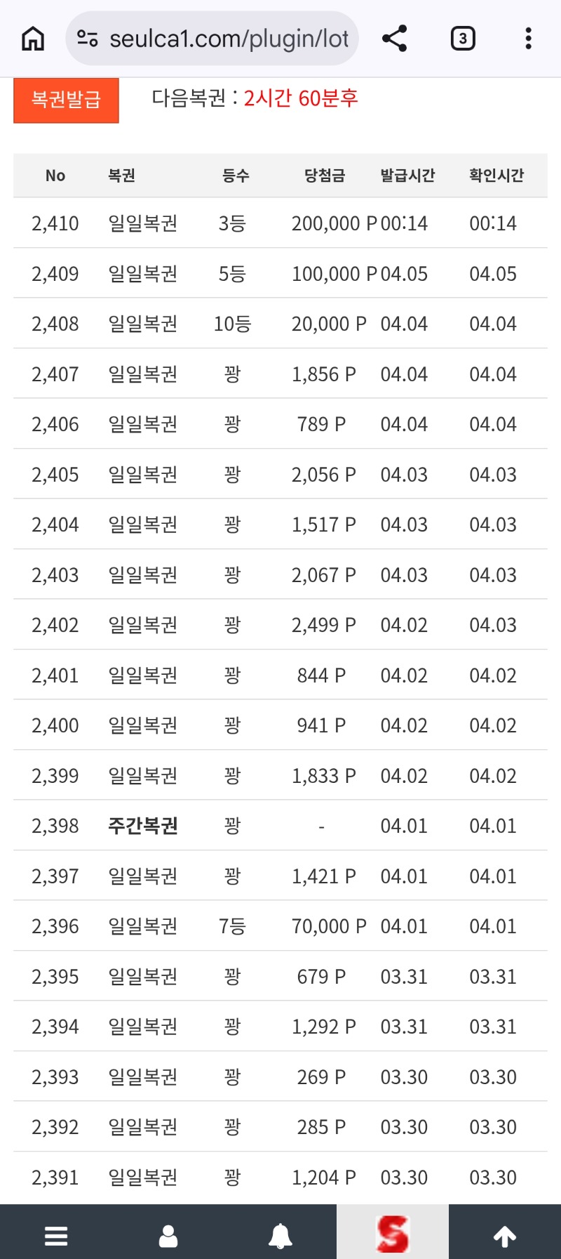 일복 3등 에어팡 3 0 0 04.06 00:15 *기프티콘 바코드 노출 주의* <- 나이스~ 0 0 https://seulca1.com/bbs/board.php?bo_table=free&wr_id=3759407 Author 4 4 Lv.14 에어팡 14 24,119,297 (15%) 에어팡님 보유 포인트 : P 1,335,103 +7 04.09 퓨리 316배 +13 04.09 퓨리 124배 +8 04.09 퓨리 388배 +5 04.09 퓨리 109배 +1 04.09 맛점하세요
