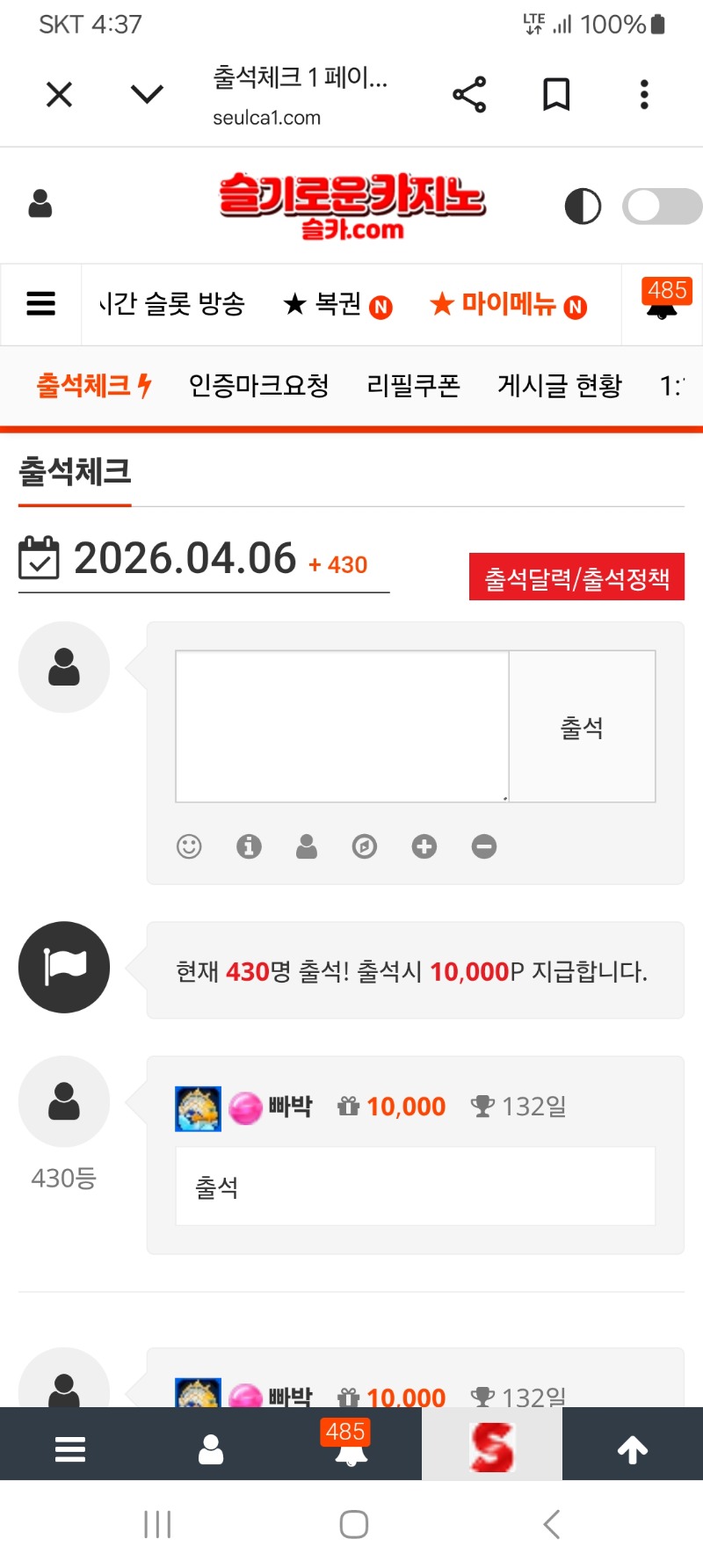 출석합니다. 빠박 2 0 0 04.06 04:38 *기프티콘 바코드 노출 주의* <- 0 0 https://seulca1.com/bbs/board.php?bo_table=free&wr_id=3759837 Author 1 0 Lv.11 빠박 11 10,538,592 (17%) 빠박님 보유 포인트 : P 301,810 +6 04.07 맛점드세요 04.07 굿모닝입니다 04.07 출석들하세요 +18 04.06 부운고 레이디포츈 471.6배 +8 04.06 부운고 레이디포츈 336.6배