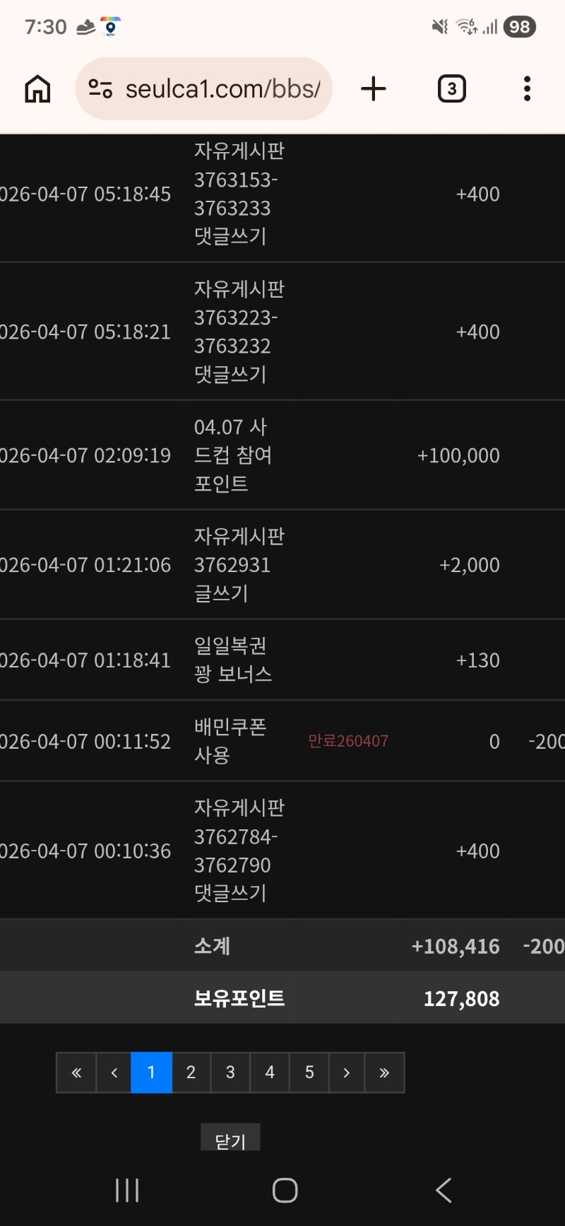 사드컵포인트감사합니다 무휼 1 0 0 04.07 07:32 *기프티콘 바코드 노출 주의* <- 어제 사드컵1회전탈락ㅜㅜ 16강까지보고잤네요ㅅㅅ 새벽에읹나야되서ㅜㅜ 사자님포인트감삼다 재밌었어요ㅎ 0 0 https://seulca1.com/bbs/board.php?bo_table=free&wr_id=3763425 Author 7 0 Lv.13 무휼 13 22,172,695 (83%) 무휼님 보유 포인트 : P 252,855 +4 04.09 멀린150배 리플x +12 04.09 멀린221배 리플x +2 04.09 존아침입니다 +11 04.08 멀린221배ㅈ리플x +11 04.08 멀린913배 리플x