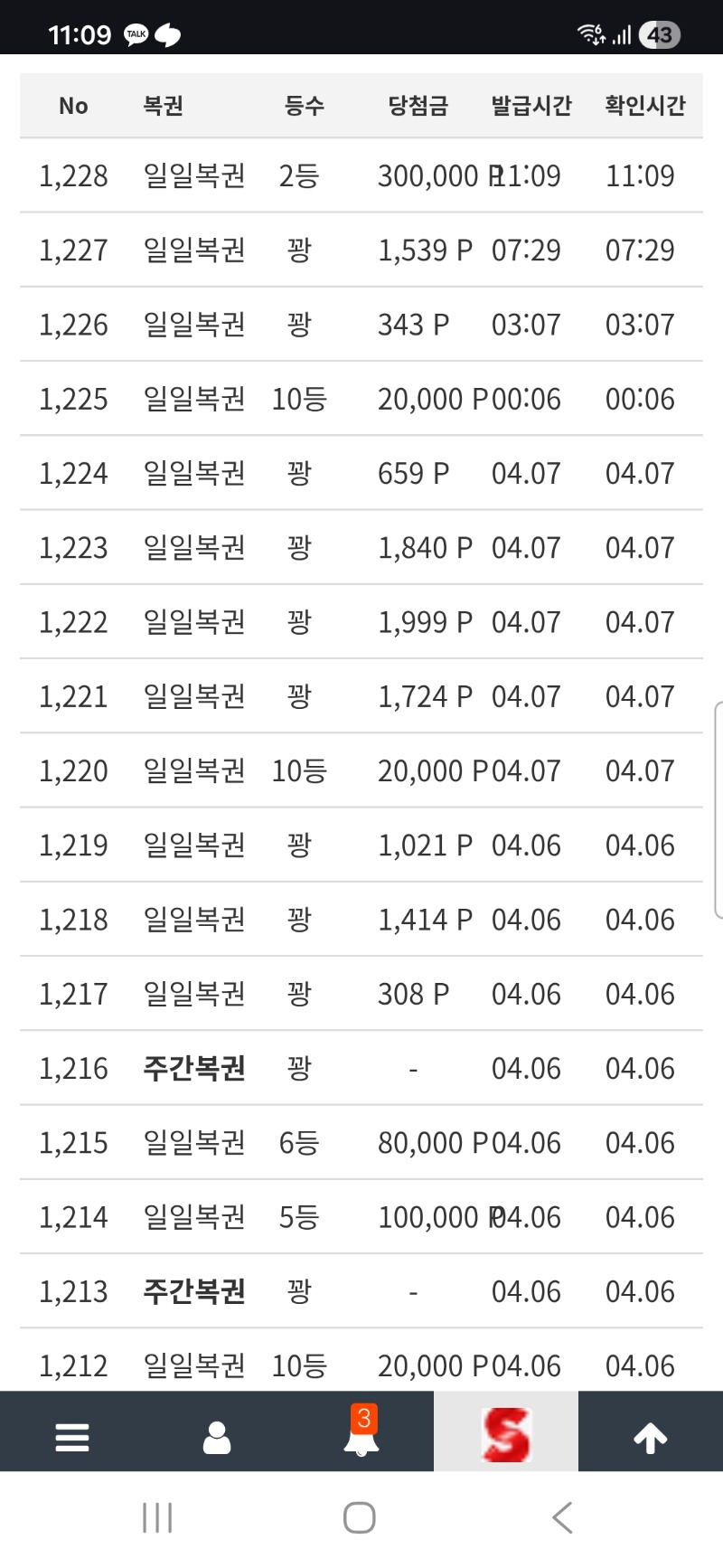 일복2등당첨 연타쟁이 6 0 0 11:10:10 *기프티콘 바코드 노출 주의* <- 이번주 일복당첨 왜이리 잘되나 ㅋ 0 0 https://seulca1.com/bbs/board.php?bo_table=free&wr_id=3767198 Author 1 0 Lv.11 연타쟁이 11 10,914,975 (30%) 연타쟁이님 보유 포인트 : P 884,104 +2 04.08 레부 돌발100프로 가자 +17 04.08 마담메가565배 +19 04.08 사무메가956배 +6 04.08 일복2등당첨 +12 04.08 플로팅드래곤295배