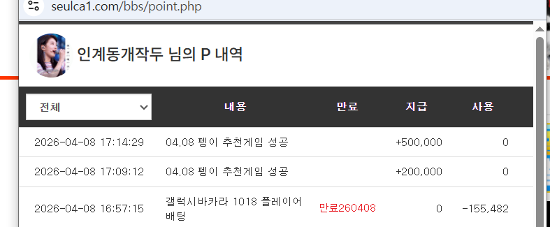 펭이 추겜당첨 수익까지 샤샷 인계동개작두 3 0 0 17:16:45 *기프티콘 바코드 노출 주의* <- 나이스~~ 한번더 도전 0 0 https://seulca1.com/bbs/board.php?bo_table=free&wr_id=3768049 Author 4 0 Lv.15 인계동개작두 15 34,874,611 (24%) 인계동개작두님 보유 포인트 : P 0 +6 04.08 돈이 추겜당첨 +3 04.08 펭이 추겜당첨 수익까지 샤샷 +17 04.08 바카라 뱅 네츄럴 2 대 9 +17 04.08 바카라 뱅커 승 1 대 5 +14 04.08 바카라 승 1 대 4