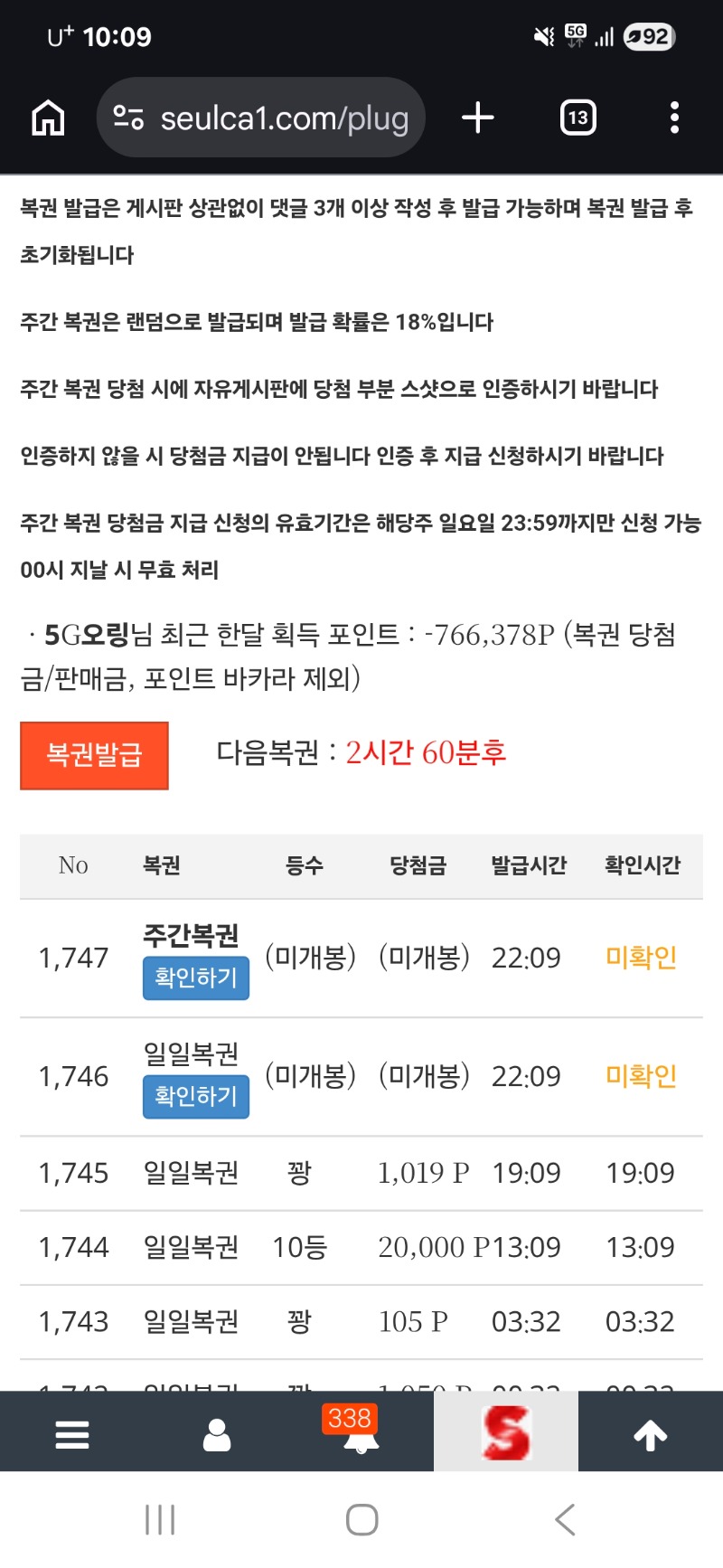 쌍복이왔습니당 5G오링 2 0 0 22:10:30 *기프티콘 바코드 노출 주의* <- 결과는 꽝 ㅠㅠ 0 0 https://seulca1.com/bbs/board.php?bo_table=free&wr_id=3768821 Author 3 0 Lv.14 5G오링 14 23,273,755 (3%) 5G오링님 보유 포인트 : P 3,846,730 04.08 최배비 축하드립니다 +2 04.08 쌍복이왔습니당 04.08 맛점하세여 04.08 새벽복권꽝 +59 04.08 슈천 5225배