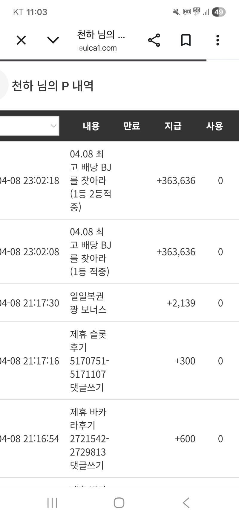 최배비 1~2등적중ㅅㅅ 천하 3 0 0 04.08 23:03 *기프티콘 바코드 노출 주의* <- 0 0 https://seulca1.com/bbs/board.php?bo_table=free&wr_id=3769011 Author 0 0 Lv.11 천하 11 12,215,072 (73%) 천하님 보유 포인트 : P 1,018,733 +3 04.08 최배비 1~2등적중ㅅㅅ +8 04.08 건담 729배 +18 04.08 네츠럴나인 보너스 10배 ㅅㅅ +4 04.08 버메가 1059배 +19 04.08 버메가 1059배