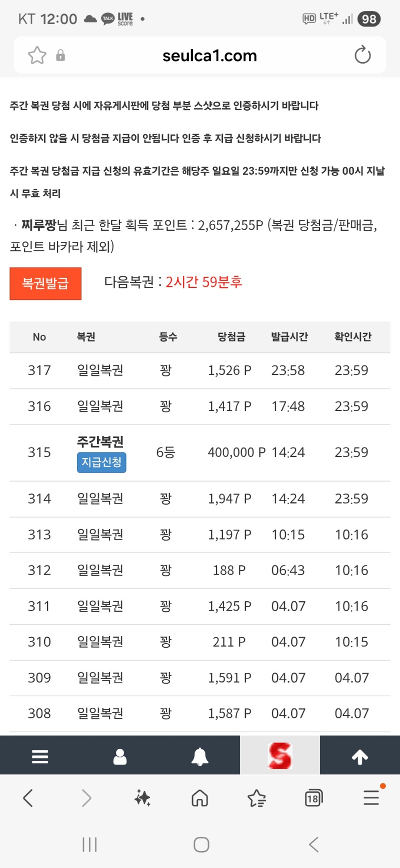 주복 6등 당첨 찌루짱 4 0 0 00:01:23 *기프티콘 바코드 노출 주의* <- 0 0 https://seulca1.com/bbs/board.php?bo_table=free&wr_id=3769153 Author 1 0 Lv.9 찌루짱 9 6,043,617 (51%) 찌루짱님 보유 포인트 : P 2,624,172 04.09 출석 +4 04.09 주복 6등 당첨 +31 04.08 멀린 5080배 +31 04.08 토라메 529배 +2 04.08 출석