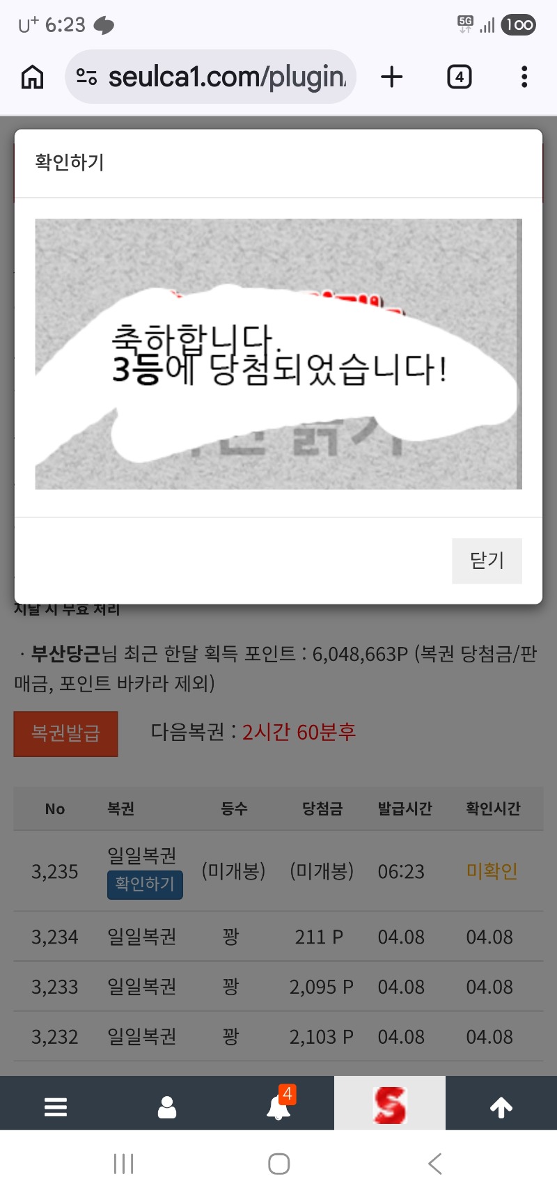 모닝일복이 3등 부산당근 4 0 0 06:24:11 *기프티콘 바코드 노출 주의* <- 감사합니다 0 0 https://seulca1.com/bbs/board.php?bo_table=free&wr_id=3769583 Author 2 1 Lv.14 부산당근 14 29,982,654 (99%) 부산당근님 보유 포인트 : P 2,900,103 +4 04.09 모닝일복이 3등 +32 04.07 커담중 호카라 담배값투척 +3 04.06 호딱이 로또콜라보 배민쿱 +1 04.05 [비밀글] 배민쿱 교환신청 +7 04.05 일복이 3등