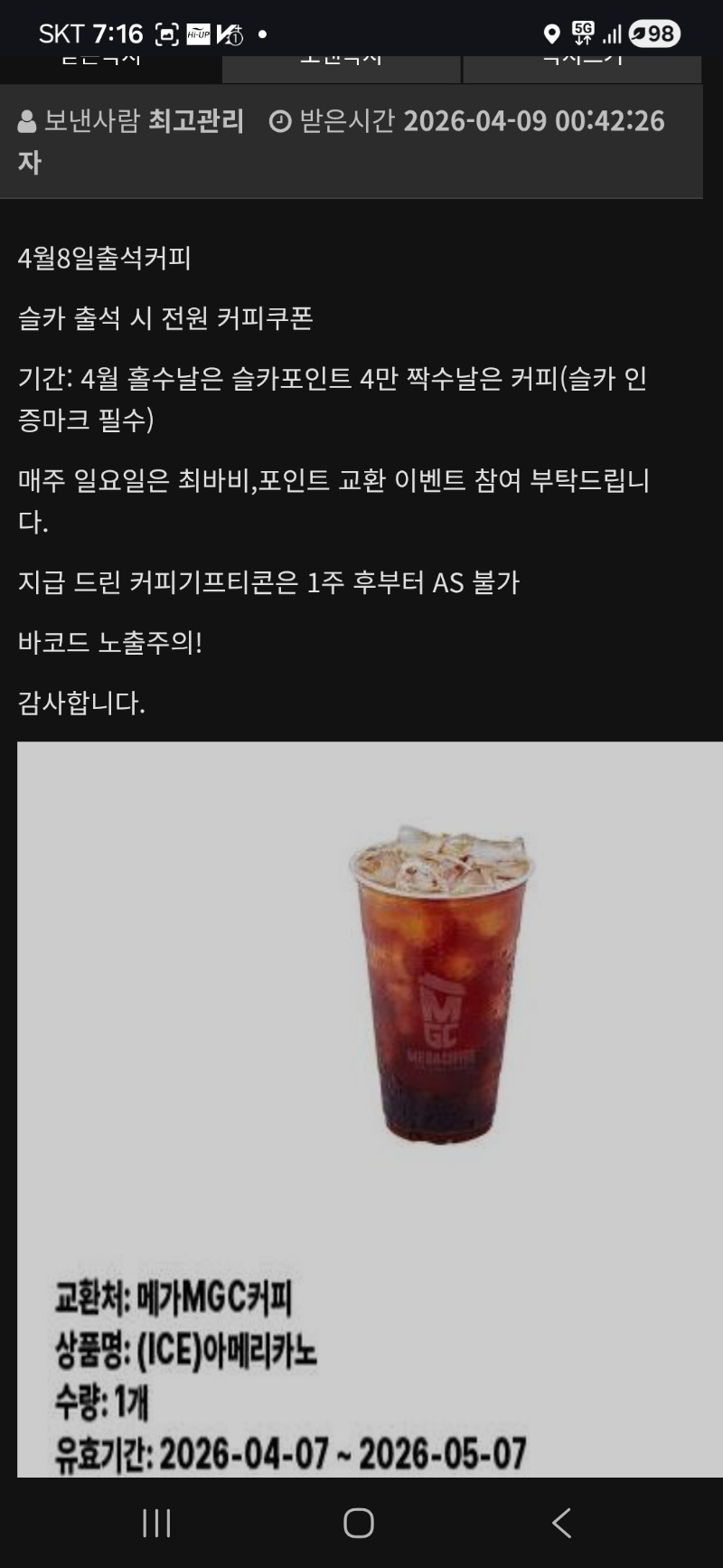 출책 커피♡ 부산로이 0 0 0 07:17:37 *기프티콘 바코드 노출 주의* <- 0 0 https://seulca1.com/bbs/board.php?bo_table=free&wr_id=3769689 Author 0 0 Lv.9 부산로이 9 6,777,921 (69%) 부산로이님 보유 포인트 : P 665,353 04.09 출책 커피♡ +5 04.08 오와~피자당첨 +2 04.07 물개믿어따~# +2 04.07 부산 벚꽃마지막구경♡ +26 04.07 나이스3연승