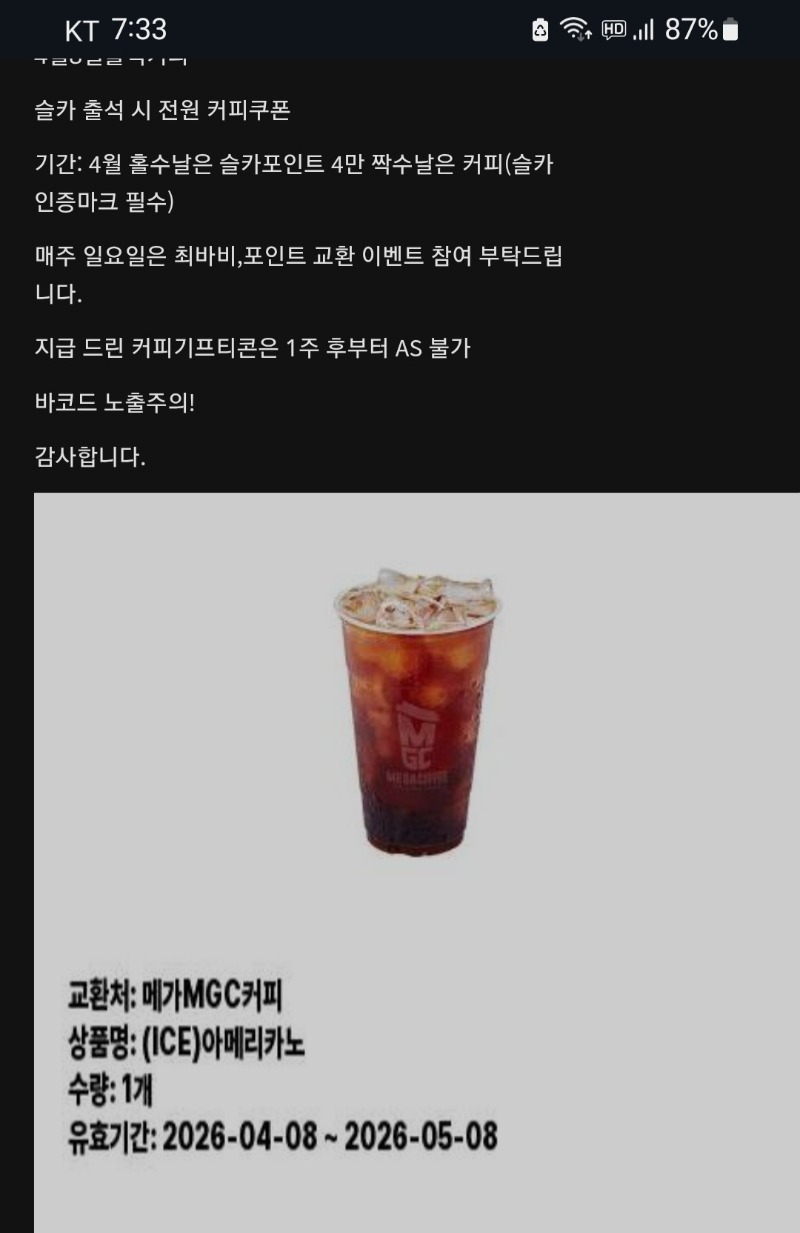 출석 커피 감사해요 당근 1 1 0 08:42:49 *기프티콘 바코드 노출 주의* <- 1 0 https://seulca1.com/bbs/board.php?bo_table=free&wr_id=3769841 Author 1 0 Lv.10 당근 10 8,818,852 (40%) 당근님 보유 포인트 : P 82,092 +1 04.09 출석 커피 감사해요 04.09 목욜 아침은 리필로 시작 +14 04.09 그라메 143 리플 없음 +1 04.09 모닝 슬카라는 댕 +1 04.09 굿모닝입니다