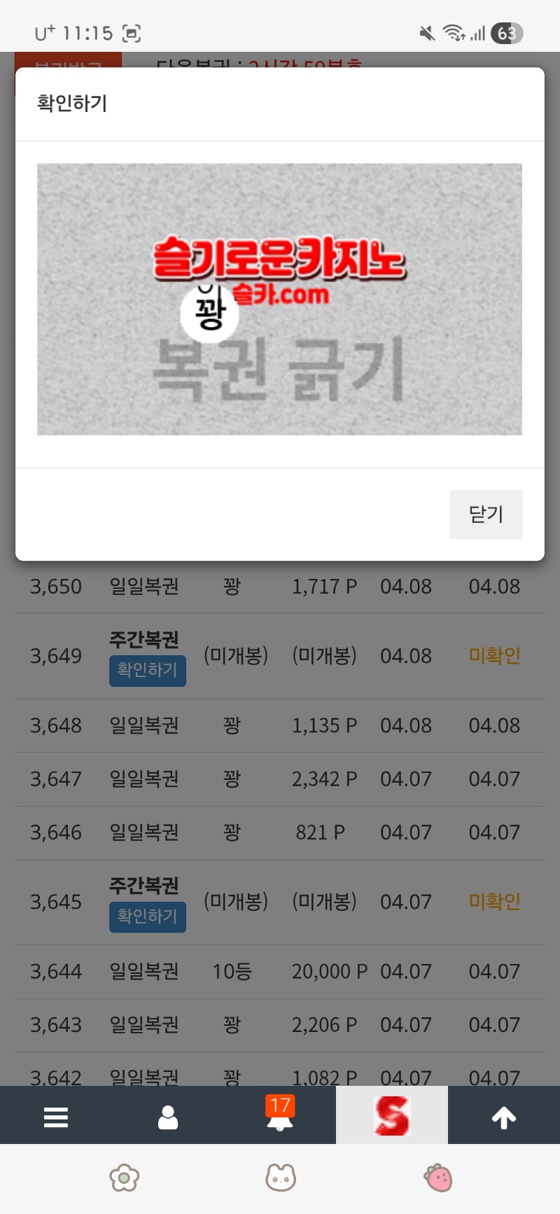 일복은~~캬~~~앜~~!!!!!퉤!!! 쁘띠 3 0 0 11:16:28 *기프티콘 바코드 노출 주의* <- 0 0 https://seulca1.com/bbs/board.php?bo_table=free&wr_id=3770210 Author 17 4 Lv.17 쁘띠 17 80,238,488 (34%) 쁘띠님 보유 포인트 : P 2,299,251 +6 04.09 주복~~~한꺼번에~~ +3 04.09 일복은~~캬~~~앜~~!!!!!퉤!!! 04.09 세번째 쌍복~~!!!! 04.09 첫복권 꽝 04.09 출첵 ~커피 도찹