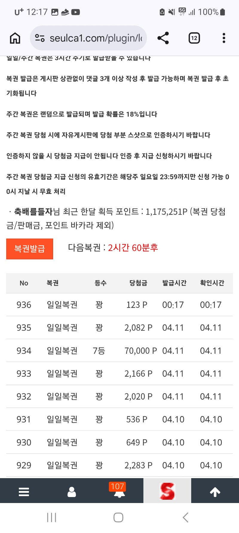 첫일복 꽈요 축배를들자 0 0 0 00:18:14 *기프티콘 바코드 노출 주의* <- 아쉽네요 ㅠㅠ 0 0 https://seulca1.com/bbs/board.php?bo_table=free&wr_id=3778797 Author 3 0 Lv.13 축배를들자 13 19,620,728 (32%) 축배를들자님 보유 포인트 : P 91,879 04.12 첫일복 꽈요 04.12 출석 04.11 이모 미안타 04.11 로또2번 당첨분들 축하드립니다 04.11 오늘하루도 수고하셨습니다
