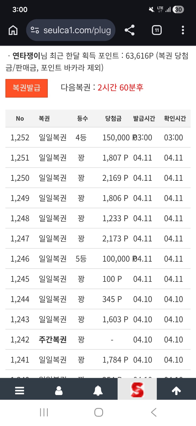 일복4등 당첨 연타쟁이 9 1 0 03:01:38 *기프티콘 바코드 노출 주의* <- ㅅㅅ 1 0 https://seulca1.com/bbs/board.php?bo_table=free&wr_id=3778998 Author 1 0 Lv.11 연타쟁이 11 11,162,327 (38%) 연타쟁이님 보유 포인트 : P 475,318 +9 04.12 일복4등 당첨 +6 04.12 쌍퍼펙인데 이걸 안갔네 희미 +12 04.12 내추럴9 페펙트까지 ㅅ +2 04.12 슬롯왕종료 +54 04.11 스보다이스천5458배