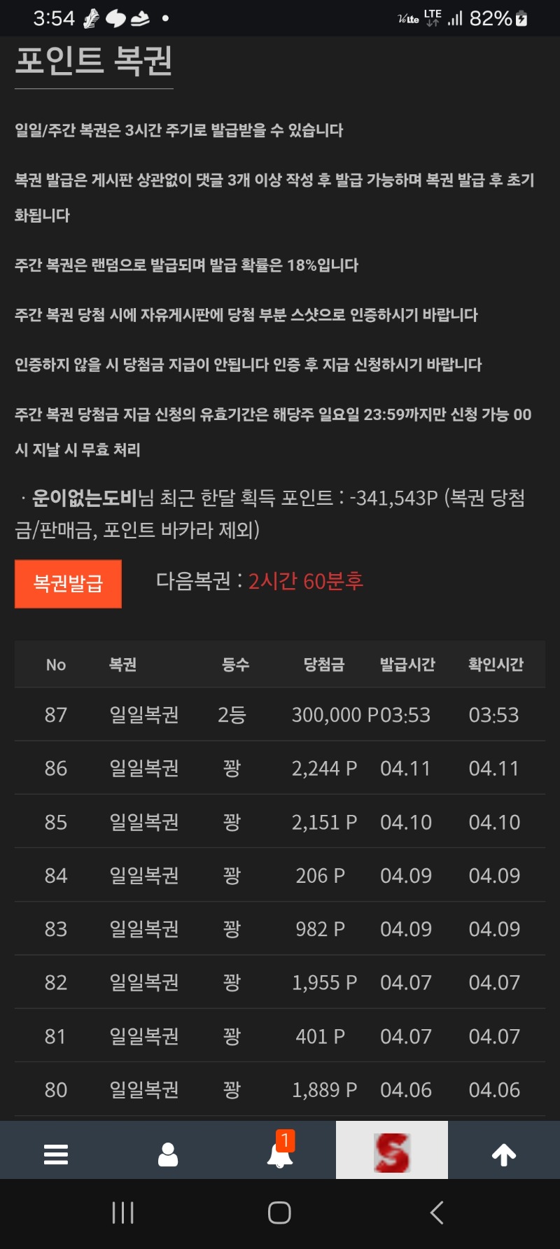 일복 2등 당첨 축하드립니다