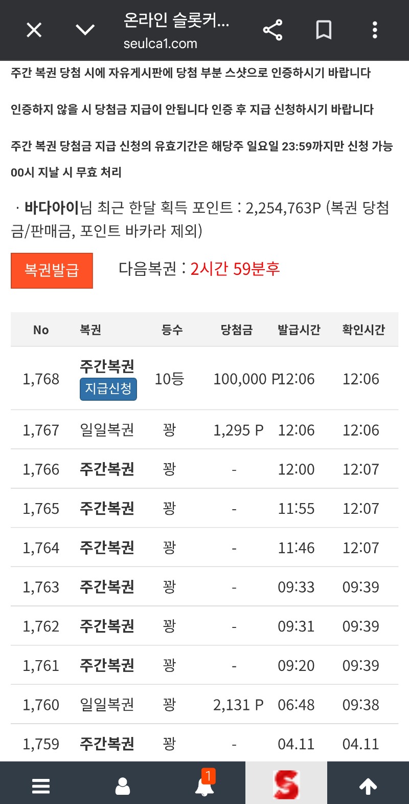 주복10등 당첨축하드립니다