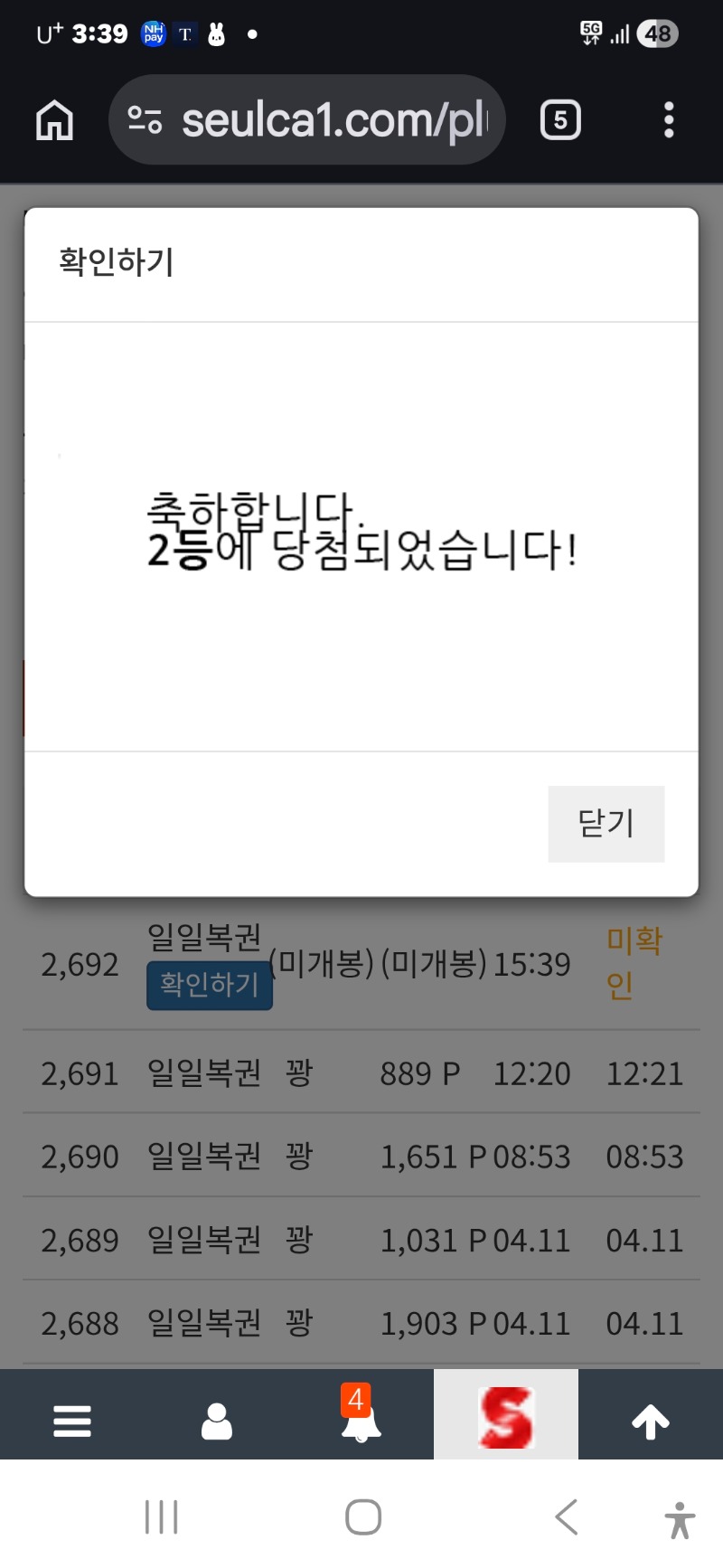 일복2등당첨 ㅎ 안양하마 13 1 0 15:40:53 *기프티콘 바코드 노출 주의* <- 1 0 https://seulca1.com/bbs/board.php?bo_table=free&wr_id=3780433 Author 3 1 Lv.16 안양하마 16 66,636,163 (83%) 안양하마님 보유 포인트 : P 344,285 04.12 최바비 보러 가즈아~~ +13 04.12 일복2등당첨 ㅎ +2 04.12 리필 04.12 맛점하세요 04.12 빠른보상 감사합니다