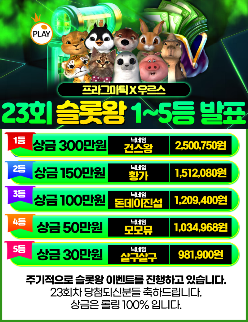 [결과발표] 23회 슬롯왕 결과 발표