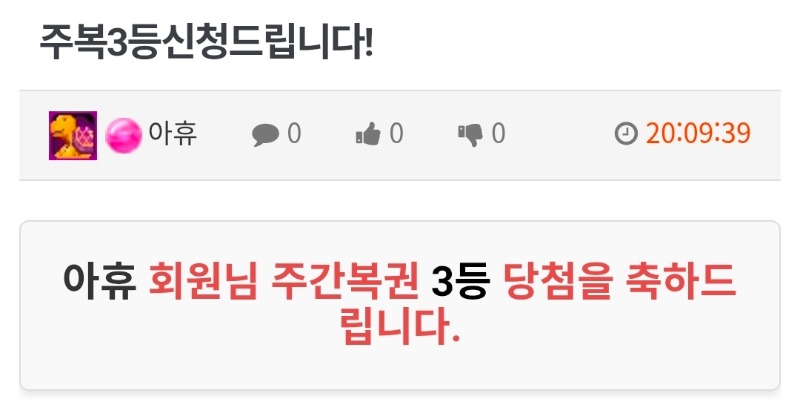 주간복권3등 아휴 9 0 0 20:10:29 *기프티콘 바코드 노출 주의* <- 신청완료♡ 꾸벅 0 0 https://seulca1.com/bbs/board.php?bo_table=free&wr_id=3781031 Author 3 0 Lv.10 아휴 10 8,049,918 (2%) 아휴님 보유 포인트 : P 7,945 +9 04.12 주간복권3등 +1 04.12 [비밀글] 주복3등신청드립니다! +4 04.12 슬롯왕아쉽ㅠ +13 04.12 꽃뱀1000. 101배 +1 04.12 즐건일욜되세요~