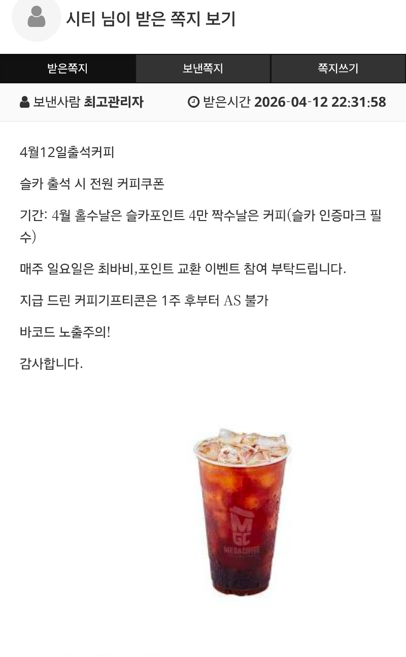 출첵 커피 시티 1 0 0 04.12 22:32 *기프티콘 바코드 노출 주의* <- 감사합니다 0 0 https://seulca1.com/bbs/board.php?bo_table=free&wr_id=3781365 Author 1 0 Lv.16 시티 16 63,846,537 (69%) 시티님 보유 포인트 : P 220,441 +1 04.12 굿밤들되세요 +1 04.12 출첵 커피 04.12 겜이나 한판하러 +2 04.12 리필 완료~! +2 04.12 일복