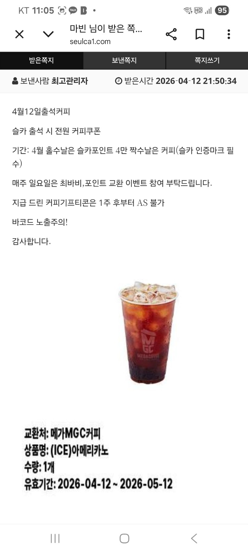 커피 감사합니다 ~~^^ 마빈 0 0 0 04.12 23:09 *기프티콘 바코드 노출 주의* <- 0 0 https://seulca1.com/bbs/board.php?bo_table=free&wr_id=3781483 Author 1 1 Lv.15 마빈 15 42,297,025 (61%) 마빈님 보유 포인트 : P 693,988 04.13 출첵이요 +6 04.13 파이로스 637 +7 04.13 좀스 1710 +2 04.13 좀스 492 +2 04.13 좀스 414