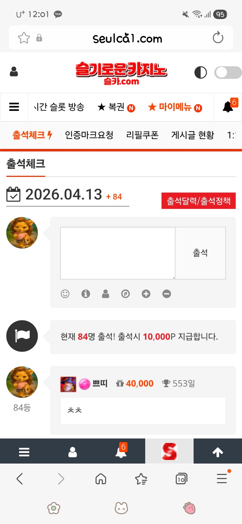 출첵 쁘띠 0 0 0 00:02:29 *기프티콘 바코드 노출 주의* <- 0 0 https://seulca1.com/bbs/board.php?bo_table=free&wr_id=3781751 Author 17 4 Lv.17 쁘띠 17 80,828,022 (36%) 쁘띠님 보유 포인트 : P 357,307 04.13 출첵 포인트 +2 04.13 최바비~~2등적중 04.13 출첵 +4 04.12 출첵 커피 도착~ +2 04.12 저녁 복권 꽝