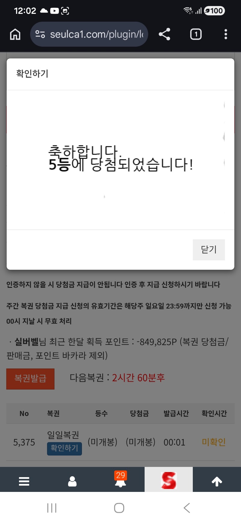 벨님. 일복 5등. 당첨 축하드려요