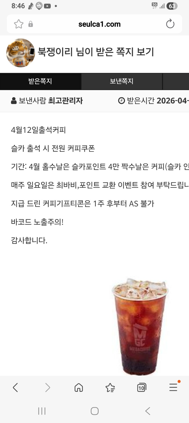 출석 커피 감사합니다. 북쟁이리 1 0 0 08:47:26 *기프티콘 바코드 노출 주의* <- 잘 마실께요. 0 0 https://seulca1.com/bbs/board.php?bo_table=free&wr_id=3782614 Author 4 3 Lv.15 북쟁이리 15 30,972,679 (4%) 북쟁이리님 보유 포인트 : P 115,735 +1 04.13 이모 소환 +1 04.13 출석 커피 감사합니다. +1 04.13 굿모닝입니다 +3 04.13 루징.... +1 04.13 출첵