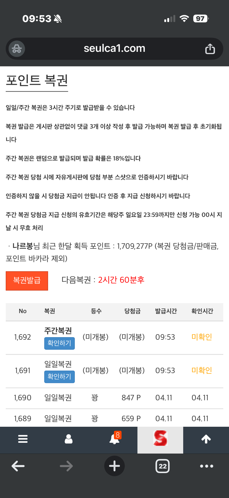 쌍복이~~ 나르봉 2 0 0 09:54:05 *기프티콘 바코드 노출 주의* <- 과연~~ 0 0 https://seulca1.com/bbs/board.php?bo_table=free&wr_id=3782755 Author 8 1 Lv.12 나르봉 12 17,487,278 (89%) 나르봉님 보유 포인트 : P 1,983,783 +2 04.13 커피쿠폰 감사합니다 +2 04.13 쌍복이~~ +23 04.11 건담 632 +21 04.11 스노우파티 205 +17 04.11 스노우파티 289