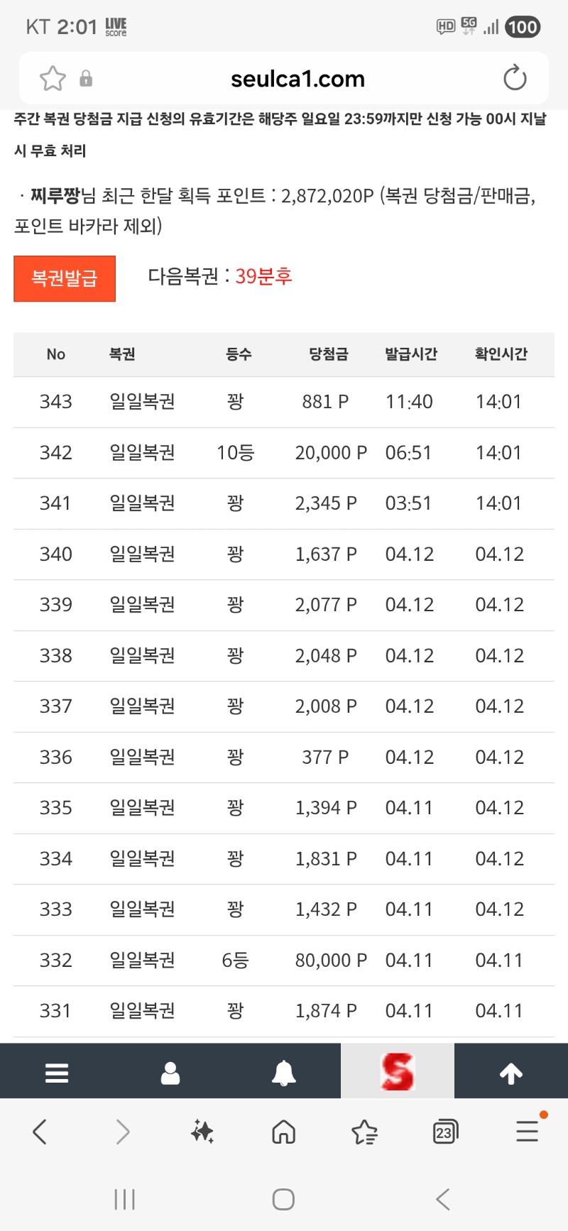 일복 10등 당첨 찌루짱 7 0 0 14:02:32 *기프티콘 바코드 노출 주의* <- 0 0 https://seulca1.com/bbs/board.php?bo_table=free&wr_id=3783536 Author 1 0 Lv.9 찌루짱 9 6,438,887 (60%) 찌루짱님 보유 포인트 : P 3,078,364 +7 04.13 일복 10등 당첨 +18 04.13 오라메 384배 +31 04.12 판다2 386배 +8 04.11 일복 6등 당첨 +28 04.11 판다2 527배