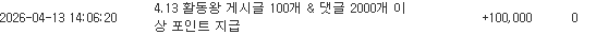 활동왕 포인트 이글아이 4 0 0 15:49:35 *기프티콘 바코드 노출 주의* <- 항상 매주 10만은 받는거 같다 0 0 https://seulca1.com/bbs/board.php?bo_table=free&wr_id=3783965 Author 1 0 Lv.12 이글아이 12 15,676,910 (53%) 이글아이님 보유 포인트 : P 813,340 +4 04.13 활동왕 포인트 +1 04.13 저도 당분간은 좀 쉬며 눈팅 하다가 04.13 달이 추겜 올 슈슈 졸업 +19 04.13 세번째 찾아주공 승 +17 04.13 두번째는 아프다~ 패
