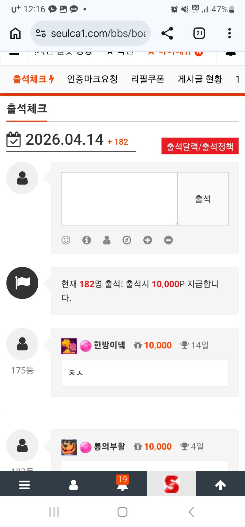 출석!! 한방이넼 0 0 0 00:20:41 *기프티콘 바코드 노출 주의* <- 출석합니다. 0 0 https://seulca1.com/bbs/board.php?bo_table=free&wr_id=3785721 Author 4 1 Lv.10 한방이넼 10 8,025,155 (1%) 한방이넼님 보유 포인트 : P 4,511,194 04.14 컬트 2517 배 +5 04.14 아이돌 팝 263배 04.14 슈슈 148배 04.14 오투 393배 +9 04.14 컬트? 2517 배
