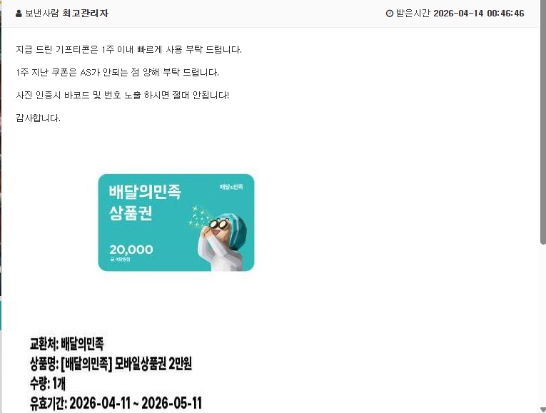 달이 롤링맥스 배민쿱~! 프리포 0 0 0 01:44:36 *기프티콘 바코드 노출 주의* <- 감사함둥둥둥! 0 0 https://seulca1.com/bbs/board.php?bo_table=free&wr_id=3785861 Author 2 0 Lv.9 프리포 9 7,542,484 (88%) 프리포님 보유 포인트 : P 3,797,660 04.14 똔부장님 수익포 감사함둥둥~! 04.14 달이 롤링맥스 배민쿱~! 04.14 다들 존밤 되시라용~! 04.14 출첵 갓짬! +15 04.13 사이버팝 606배