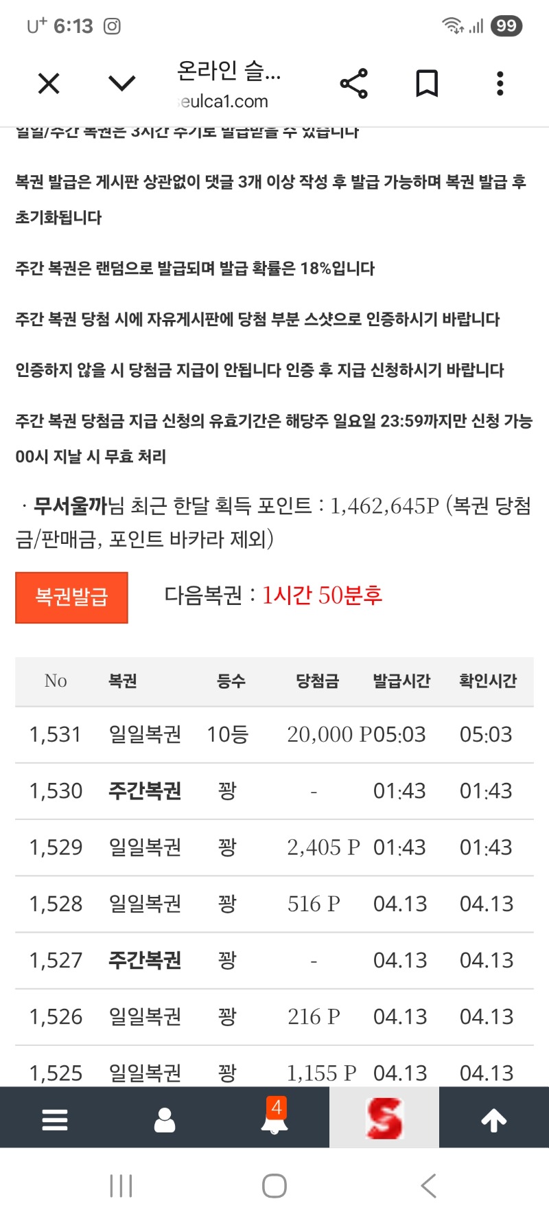 나도 10등 무서울까 6 0 0 04.14 06:13 *기프티콘 바코드 노출 주의* <- 된줄도모르고있었내요 ㅋㅋㅋ 0 0 https://seulca1.com/bbs/board.php?bo_table=free&wr_id=3786154 Author 4 2 Lv.12 무서울까 12 13,907,698 (18%) 무서울까님 보유 포인트 : P 946,947 +1 04.15 당첨되자말라공 난 백번꽝도전중 +1 04.14 이야 대박 형난에 잃었는데 용기가 부족했다 04.14 미니형난 수공 +18 04.14 사무메 589배 +12 04.14 사무메 184배