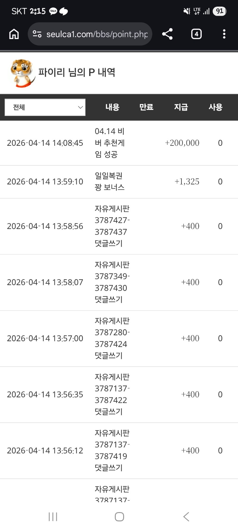 비벼추겜포 개시 파이리 9 0 0 14:15:51 *기프티콘 바코드 노출 주의* <- 0 0 https://seulca1.com/bbs/board.php?bo_table=free&wr_id=3787485 Author 3 1 Lv.13 파이리 13 19,868,556 (37%) 파이리님 보유 포인트 : P 1,289,993 +9 04.14 비벼추겜포 개시 +10 04.14 미하는 또 캐롤한폴이네...ㅠㅠ +39 04.14 스포츠 적중!!!!! 나이샤~ +4 04.14 텍갈 ㅅㅅㅅㅅㅅㅅ +2 04.14 아어 오클 텍사스 점수굳네 ㅋㅋㅋ
