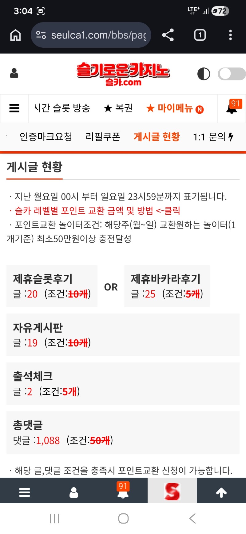 조빠지게 모아왔다 붙어보자 실버벨 6 0 0 15:05:44 *기프티콘 바코드 노출 주의* <- 다시 모아올께 에휴~~~~~ 0 0 https://seulca1.com/bbs/board.php?bo_table=free&wr_id=3787646 Author 8 6 Lv.19 실버벨 19 172,373,088 (0%) 실버벨님 보유 포인트 : P 119,445 +4 04.14 두판 승 ㅎㅎ +3 04.14 짤짤이 한판~~~승 +9 04.14 쉬었다가 다시오마. 4패... +9 04.14 바카라 3패ㅠㅠ +8 04.14 2패네..