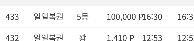 일복 5등 당첨 ㄲr꿍이 5 0 0 16:55:43 *기프티콘 바코드 노출 주의* <- 요즘 당첨이 잘되네요 0 0 https://seulca1.com/bbs/board.php?bo_table=free&wr_id=3787953 Author 0 1 Lv.9 ㄲr꿍이 9 4,931,275 (23%) ㄲr꿍이님 보유 포인트 : P 217,624 +5 04.14 일복 5등 당첨 +2 04.14 눚었지만 맛저하세요 04.13 출첵!! 04.12 출첵!! 04.11 커피 잘먹겠습니다