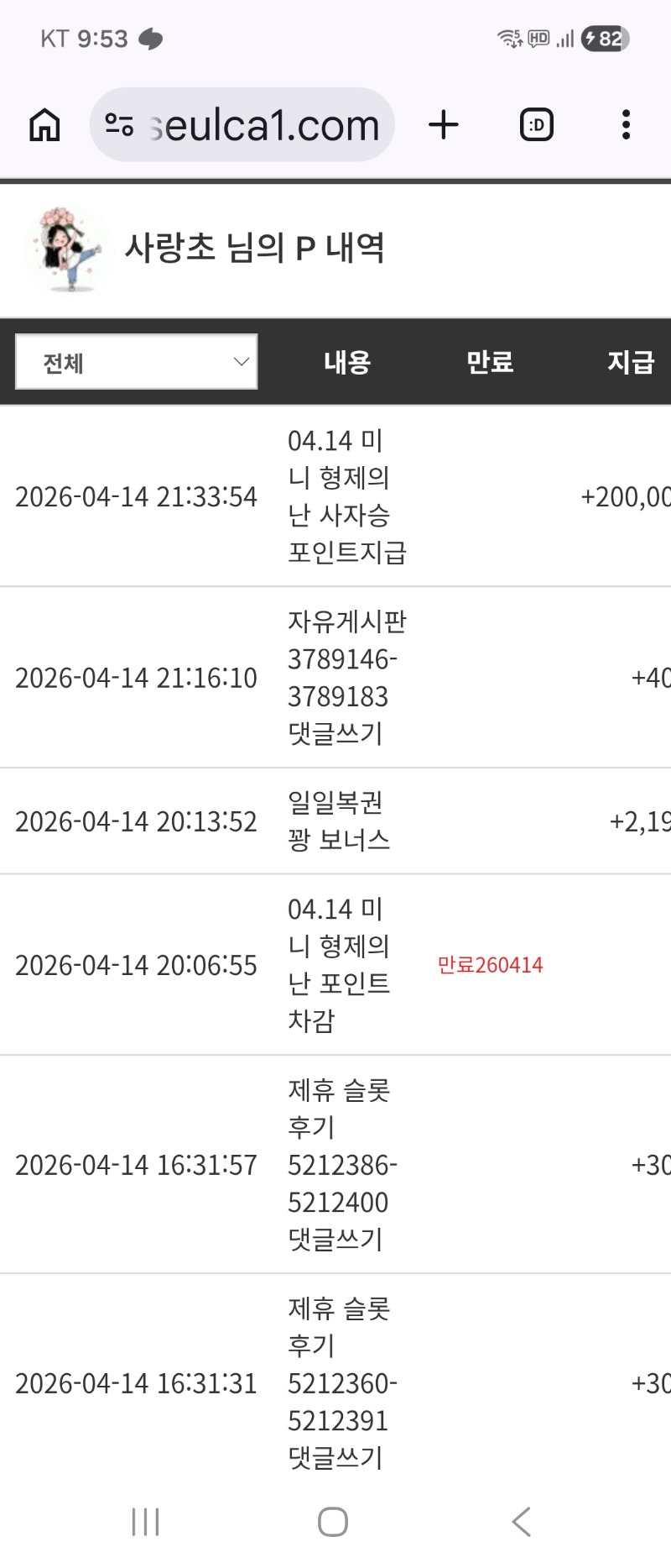 형난 사자님승 감사합니다 사랑초 6 0 0 04.14 21:54 *기프티콘 바코드 노출 주의* <- 비버님 사자님 수고하셨습니다 ~~~ 0 0 https://seulca1.com/bbs/board.php?bo_table=free&wr_id=3789343 Author 2 1 Lv.13 사랑초 13 21,756,457 (75%) 사랑초님 보유 포인트 : P 264,299 04.15 출첵완료 04.14 내 계정을 랑이랑 쓰니 헷갈리네요 +3 04.14 술마시고 겜 하는거 아닌데 +7 04.14 북몬. 맥스 +29 04.14 북몬 맥스