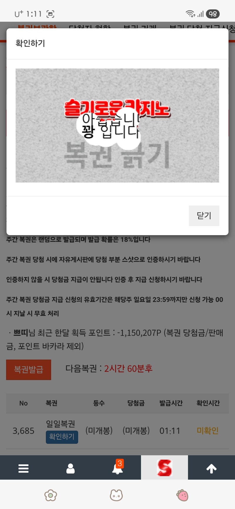 첫복권 꽝 쁘띠 0 0 0 01:27:39 *기프티콘 바코드 노출 주의* <- 0 0 https://seulca1.com/bbs/board.php?bo_table=free&wr_id=3790188 Author 17 4 Lv.17 쁘띠 17 80,952,952 (36%) 쁘띠님 보유 포인트 : P 1,004,583 04.15 첫복권 꽝 04.15 출첵 포인트 +6 04.15 미니형난 사자승~~!@치키니~~!! +11 04.14 일복 6등~~~ +10 04.14 도니 수익 포인트