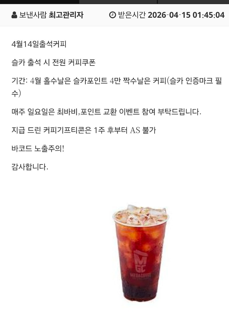 출첵 커피~감사합니다 시티 0 0 0 01:48:03 *기프티콘 바코드 노출 주의* <- 0 0 https://seulca1.com/bbs/board.php?bo_table=free&wr_id=3790213 Author 1 0 Lv.16 시티 16 64,980,319 (74%) 시티님 보유 포인트 : P 2,306,142 +2 04.15 굿밤들되세요 04.15 출첵 커피~감사합니다 04.15 머니 잇길래 보너스인줄.. +2 04.15 슬롯 한겜돌리러~ +4 04.15 쌍복등장!