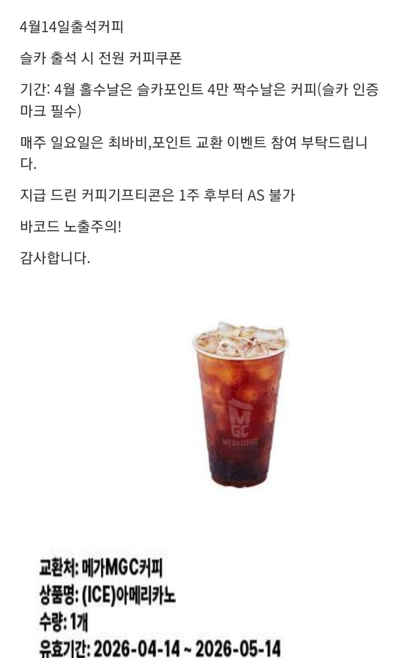 출석 커피 감사요♡ 세연 1 0 0 02:03:07 *기프티콘 바코드 노출 주의* <- 슬카 커피 감사합니다! 0 0 https://seulca1.com/bbs/board.php?bo_table=free&wr_id=3790225 Author 2 0 Lv.12 세연 12 16,365,014 (67%) 세연님 보유 포인트 : P 24,762,555 +1 04.15 출석 커피 감사요♡ +5 04.14 미형 치킨 당첨~ +5 04.11 야메추♡ +11 04.08 일복 1등 당첨! +1 04.06 달님 얼렁뚱땅 이벤포♡