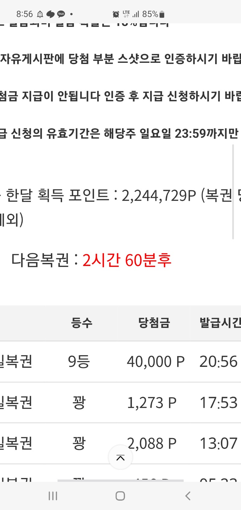 일복 9등 당첨 발머스 5 0 0 20:57:12 *기프티콘 바코드 노출 주의* <- 0 0 https://seulca1.com/bbs/board.php?bo_table=free&wr_id=3793646 Author 1 1 Lv.11 발머스 11 11,338,461 (44%) 발머스님 보유 포인트 : P 2,895,838 +5 04.15 일복 9등 당첨 +10 04.14 일복 10등 당첨 +4 04.11 일복 9등 당첨 +7 04.10 일복 5등 당첨 +7 04.09 일복 올만에 1등 당첨 ㅎ