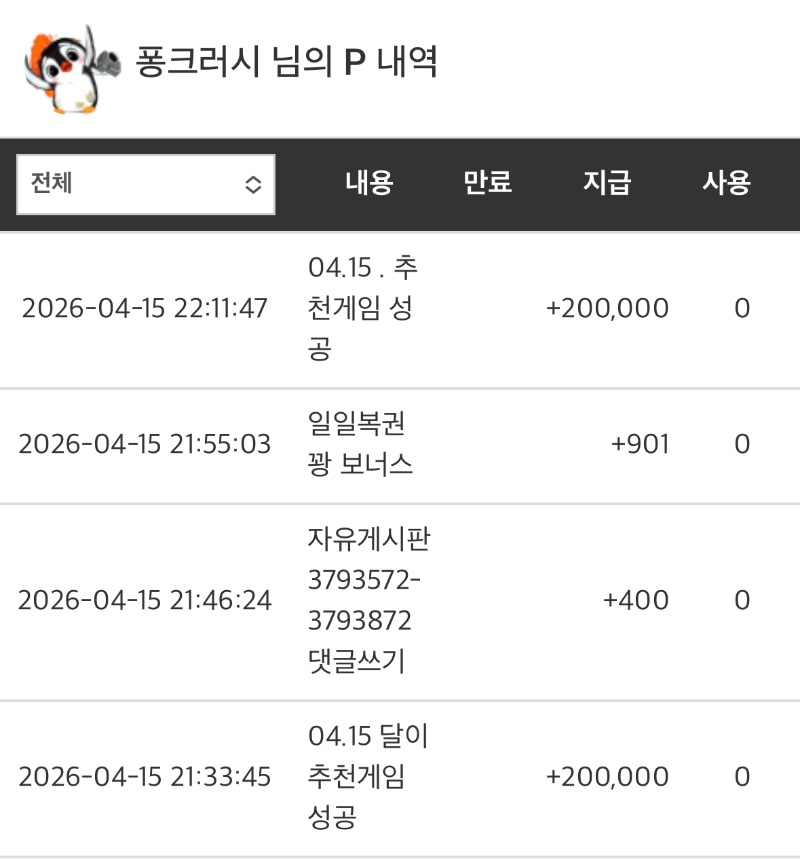 돈부장님,달이오빠추겜ㅎ 퐁크러시 13 0 0 04.15 22:56 *기프티콘 바코드 노출 주의* <- 포인트감사합니당~~~수익은..못바쓔ㅠㅠㅠ지송합니당ㅠ 0 0 https://seulca1.com/bbs/board.php?bo_table=free&wr_id=3794081 Author 1 0 Lv.13 퐁크러시 13 19,158,230 (23%) 퐁크러시님 보유 포인트 : P 733,978 +6 04.15 아술먹으러나온지30분^^집가고싶당ㅋㅋ +13 04.15 돈부장님,달이오빠추겜ㅎ +18 04.15 부앙언니가 드시길래 나도퐁크러쉬한잔^^ +15 04.15 맛점하세요~ ♡ +12 04.14 모두굿밤♡