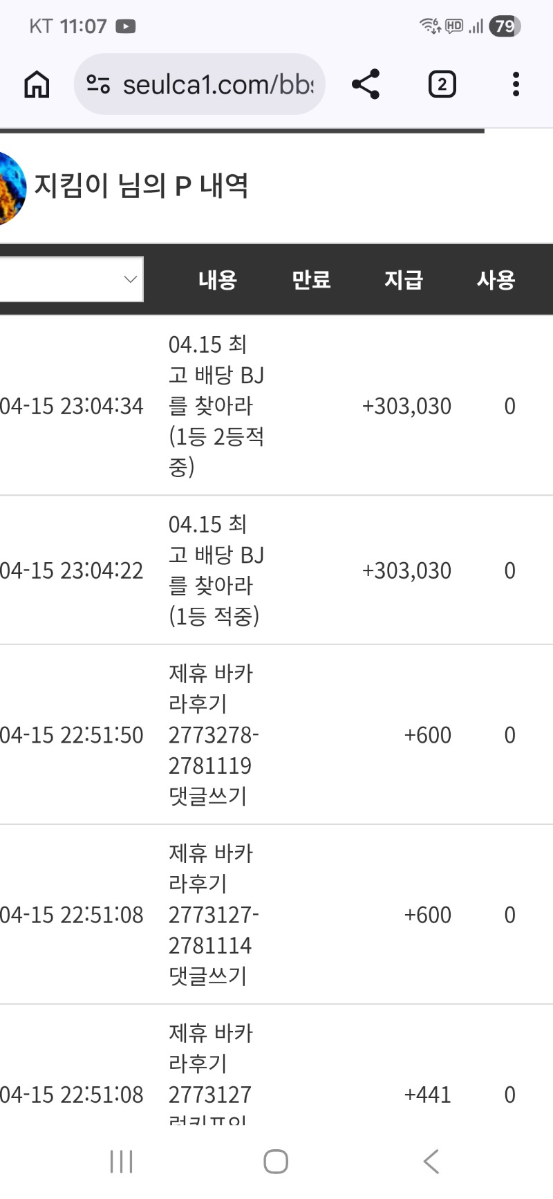 없는형편에 나이스~~1.2등 지킴이 8 0 0 04.15 23:10 *기프티콘 바코드 노출 주의* <- 돈님 사자님 감사합니다 ~ 0 0 https://seulca1.com/bbs/board.php?bo_table=free&wr_id=3794164 Author 10 5 Lv.19 지킴이 19 161,184,849 (0%) 지킴이님 보유 포인트 : P 2,929,613 +8 04.15 없는형편에 나이스~~1.2등 +2 04.12 가면갈수록 활동 최악이네 ㅋ +1 04.08 [비밀글] 배민교환쿠폰 +6 04.07 얼른 사가세요 +2 04.07 간만에 10등 ㅎㅎ