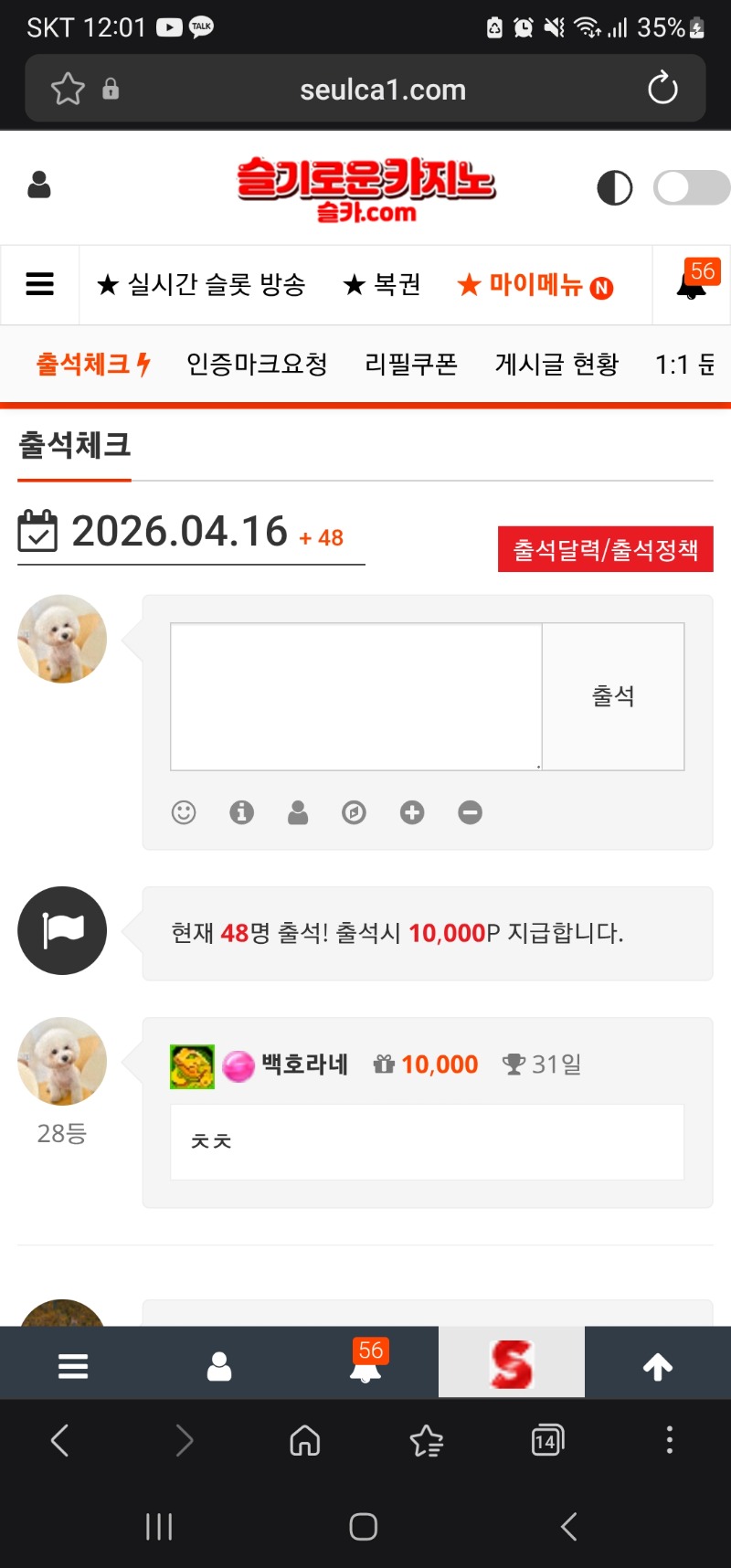 출첵~ 백호라네 0 0 0 00:02:45 *기프티콘 바코드 노출 주의* <- 0 0 https://seulca1.com/bbs/board.php?bo_table=free&wr_id=3794315 Author 3 1 Lv.12 백호라네 12 17,192,921 (83%) 백호라네님 보유 포인트 : P 0 04.16 출첵~ +10 04.15 뱀피 374배 +16 04.15 사이언매니아 614배 +6 04.15 맛점하세요 ~~~ +11 04.15 슈천166배