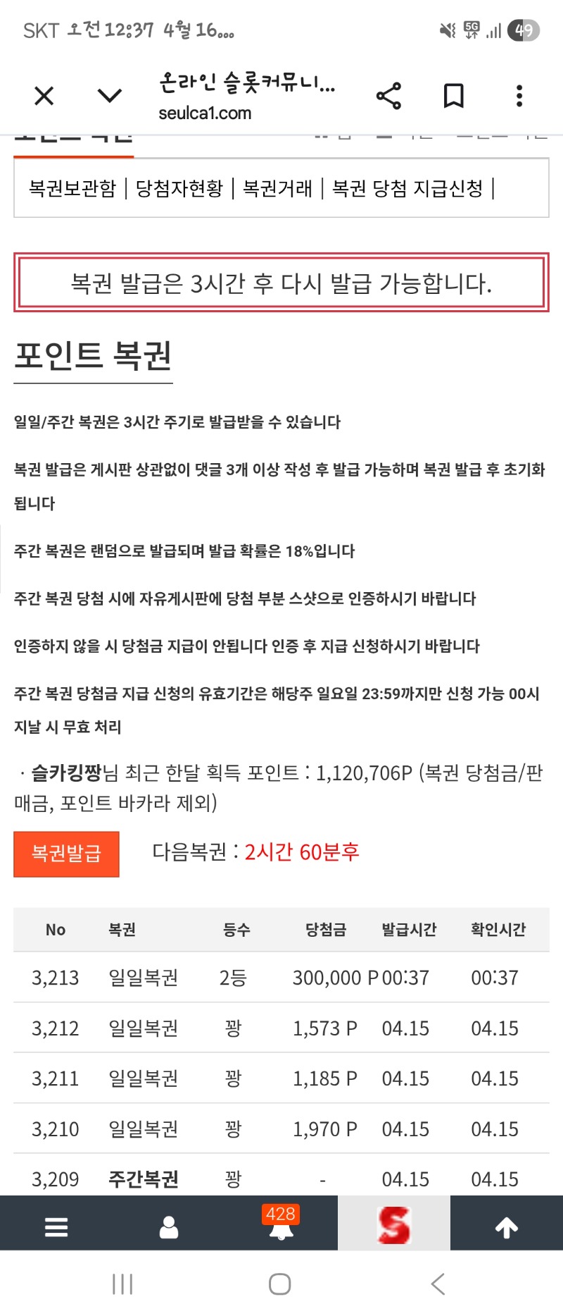 일복 2등~~~~ 슬카킹짱 5 0 0 00:37:57 *기프티콘 바코드 노출 주의* <- 0 0 https://seulca1.com/bbs/board.php?bo_table=free&wr_id=3794416 Author 1 1 Lv.12 슬카킹짱 12 16,881,032 (77%) 슬카킹짱님 보유 포인트 : P 1,581,266 +5 04.16 일복 2등~~~~ +17 04.15 버메가 602배 +9 04.15 토라메 303배 +19 04.15 버메가 265배 +23 04.15 버메가 643배