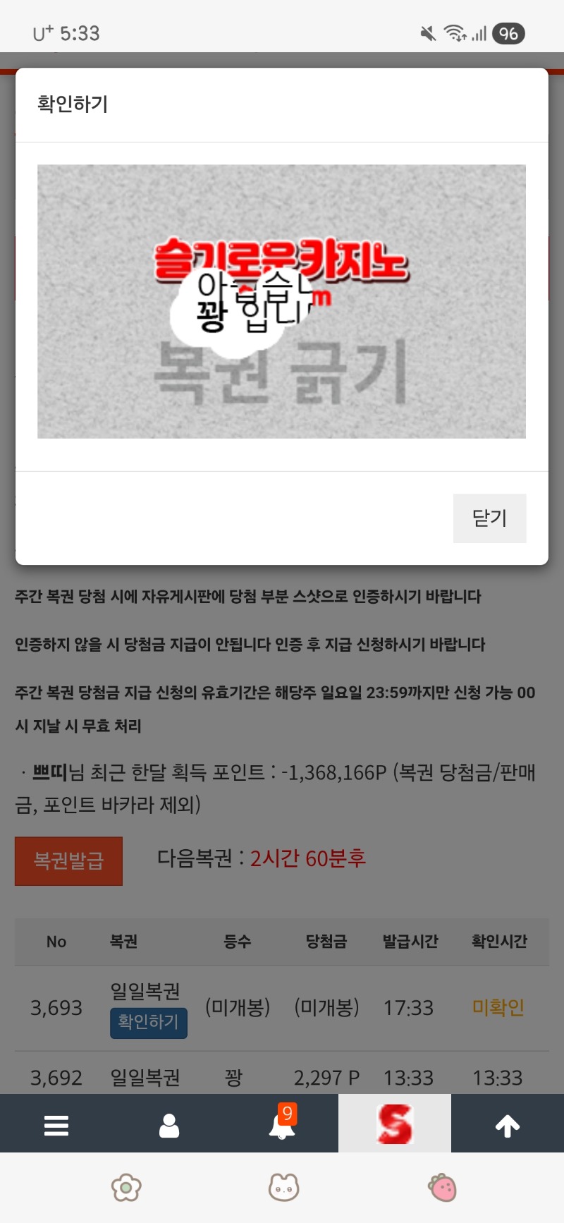 꽝 꽝~~꽝 쁘띠 1 0 0 17:33:57 *기프티콘 바코드 노출 주의* <- 0 0 https://seulca1.com/bbs/board.php?bo_table=free&wr_id=3797472 Author 17 4 Lv.17 쁘띠 17 81,011,470 (36%) 쁘띠님 보유 포인트 : P 1,246,590 +1 04.16 오예~~사자 럭포 당첨이닷~~!!!!! +1 04.16 꽝 꽝~~꽝 +4 04.16 점심 복권 꽝 +4 04.16 아침 복권 꽝 +2 04.16 첫복권 꽝