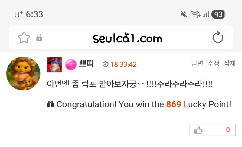 오예~~사자 럭포 당첨이닷~~!!!!! 쁘띠 1 0 0 18:34:37 *기프티콘 바코드 노출 주의* <- 0 0 https://seulca1.com/bbs/board.php?bo_table=free&wr_id=3797843 Author 17 4 Lv.17 쁘띠 17 81,011,470 (36%) 쁘띠님 보유 포인트 : P 1,246,590 +1 04.16 오예~~사자 럭포 당첨이닷~~!!!!! +1 04.16 꽝 꽝~~꽝 +4 04.16 점심 복권 꽝 +4 04.16 아침 복권 꽝 +2 04.16 첫복권 꽝