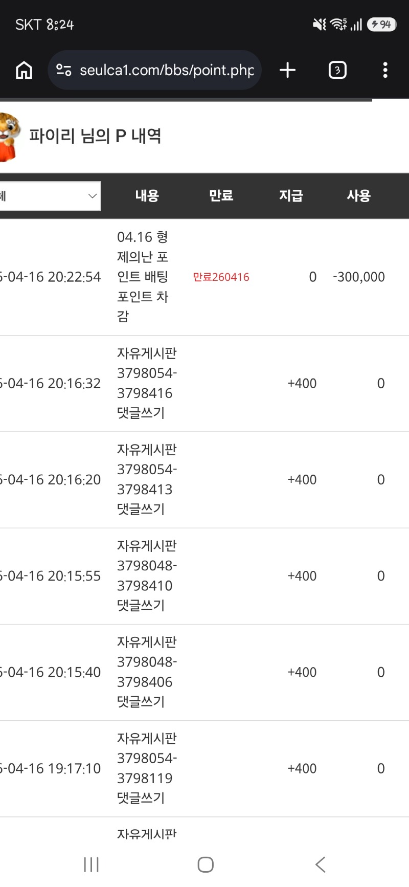 형난포 차감! 파이리 3 0 0 20:24:36 *기프티콘 바코드 노출 주의* <- 0 0 https://seulca1.com/bbs/board.php?bo_table=free&wr_id=3798468 Author 3 1 Lv.13 파이리 13 20,083,606 (41%) 파이리님 보유 포인트 : P 0 +3 04.16 형난포 차감! +8 04.16 시안 형난이벤참여 +8 04.16 핸드폰 교체후 슬카 입장 후후 +61 04.16 스포츠 적중 ㅅㅅㅅㅅㅅ +25 04.16 갤럭시 한경기남았네 ㅋㅋㅋㅋ전반 17분 1대0이군